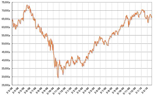 2月の前半、ギリシャをはじめとする一部の欧州諸国の財政危機が表面化したことから、ブラジルの株式相場(Bovespa指数)も世界各国の株価と同様大幅に下落し、5日には62,763pの年初来最安値を記録した。しかしその後は、米国などの主要株価が上昇に転じたことや原油や鉱物の国際価格が上昇したことに加え、国内的にも3日、アマゾン地域に建設が予定されている世界第3位の規模となる水力発電所Belo Monteダムに関して、政府が環境許認可を得たことから、依然反発はあるものの今後計画が進むことで、さらなる経済発展やエネルギー懸念の軽減が可能になるとの見方が強まり、ブラジルの株価は続伸する展開となった。そして18日には67,836p まで上昇し、その後月末にかけやや弱含んだものの、前月末比1.68%のプラスとなる66,503pで2月の取引を終了した(グラフ1)。